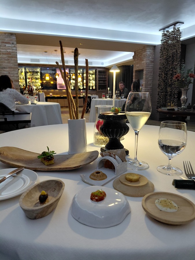 “La stagione autunnale arriverà dopo tre mesi di lavoro in estate per equilibrare i piatti, bilanciare la digeribilità degli ingredienti, e integrare gli elementi materici nell’equilibrio delle sette portate. … Mi aspetto cioè di combinare la logica green, sostenibile, immersiva, emozionale e sensoriale nella natura patrimonio Unesco, in una dimensione sempre più identitaria del locale”.