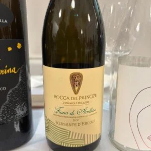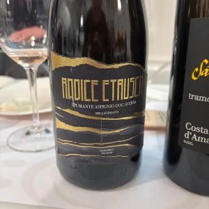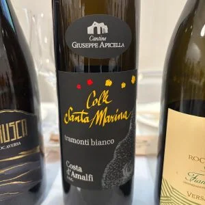 Le mozzarelle ingentiliscono il rustico, selvaggio e agrumato Asprinio, che dopo 40 mesi sui lieviti inizia ad evidenziare alcuni toni più morbidi, in primis di cedro candito. Passiamo al Costa d’Amalfi, sottozona Tramonti, la più interna della denominazione, che deve il suo nome all’azione del vento freddo del nord che spesso spira in zona; un’enclave che ha conservato anche vitigni rarissimi, come testimonia il blend in assaggio, dove spiccano i rari Ginestra e Pepella. Il primo un semi aromatico mentre la Pepella deve il suo nome al suo grappolo che soffre di acinellatura, quindi pochissimi acini molto concentrati.