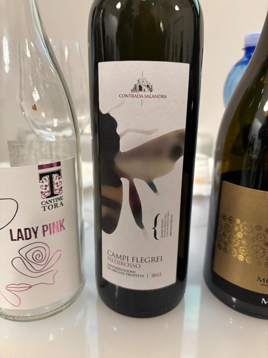 Il palato morbido e la buona persistenza gusto-olfattiva dell’Aglianico rosato non deludono, ma è il Campi Flegrei Piedirosso, fruttato, pepato, con nuance di liquirizia e pietra focaia sullo sfondo affumicato e il sorso che gioca sulla freschezza, i tannini precisi e la facile beva che ripropone le more, le susine e la spezia, con buona lunghezza ad affascinare il palato. Ottimo anche il gioco tra la complessità, la freschezza e la persistenza al palato del Canelli di Mongioia (moscato che resta in bottiglia anni prima di essere messo in commercio) che incontra bene la leggera speziatura e l’affumicatura a paglia grazie al residuo zuccherino.